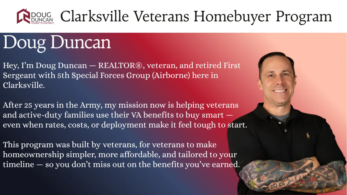 The Clarksville Veterans Homebuyer Program has helped dozens of military families find, negotiate, and move into their homes with $0 down, builder credits, and full support from start to finish.